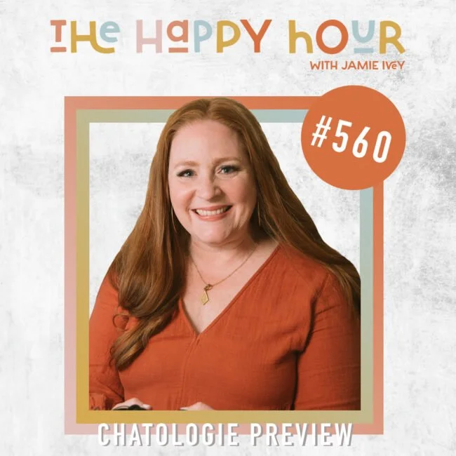 Today we’re celebrating Angie Elkins’ 1 year Anniversary with The Happy Hour. For those of you who don’t know, Angie is The Happy Hour’s editor and Director of Podcast for Ivey Media. She resides in Florida with her husband and three kids where she loves studying God’s Word, serving in the local church, and visiting Disney World. Angie is also the host her own podcast, Chatologie, a faith based podcast that invites guests to share how God has been present in their lives, what they are currently working on, and how their ministry is going out into the world.